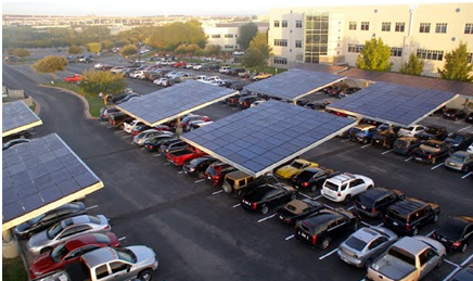 Cobrir os parques de estacionamento com painéis solares. Estes modelos, também como as árvores solares, podem mover-se para procurar a luz solar para obter uma absorção máxima (perpendicularmente).